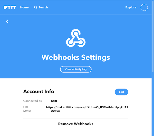 เข้าหน้า https://ifttt.com/maker_webhooks/settings เพื่อไปกีอปปี้ Token มาเก็บไว้