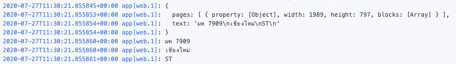 จากภาพตัวอย่าง ในส่วนเรื่องความแม่นยำจะเห็นว่า ตัวอักษร 'ง' ถูกสะกดเป็น 'ม' จะไม่แม่นยำ 100% แต่ทั้งนี้ความแม่นยำจะขึ้นอยู่กับ font ที่เลือกใช้ หรือความชัดของรูปภาพด้วยนั่นเอง ทั้งนี้เราอาจจะเก็บทั้งรูปภาพ และให้ Google Vision แกะตัวอักษรควบคู่ก็ได้เช่นกัน เพื่อใช้ตรวจสอบภายหลัง