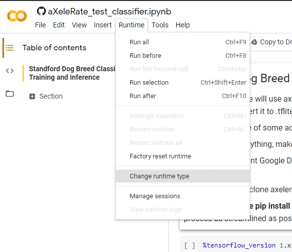 หลังจากเข้ามาแล้ว กด Runtime---> Change runtime type